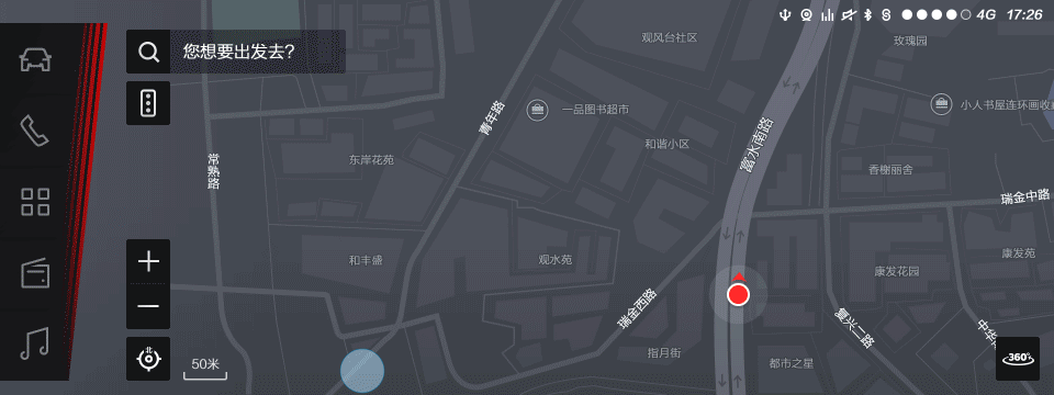 行车环境中,驾驶“以地图为桌面的操作系统,基于位置提供实时数据服务”是斑马系统重要的设计理念。距离 RX5 HMI 的设计时隔 1 年多,此次 D90 的设计方案也继承了行驶服务作为系统桌面常驻显示的理念。同时,进一步优化了原有车联网系统的功能和使用体验,让设计理念更贯彻、设计方案更扎实。