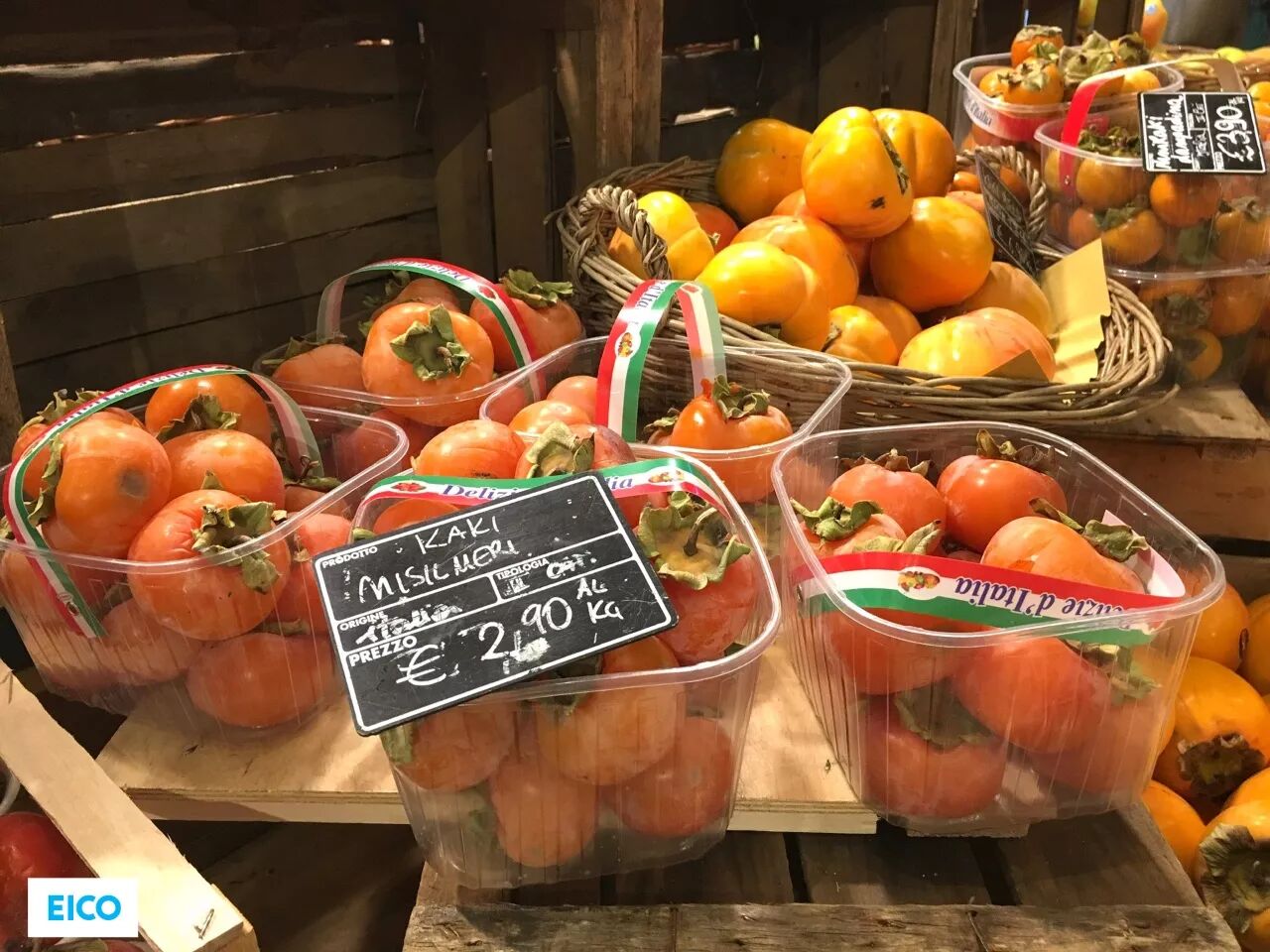 蔬果用木箱、竹筐、纸箱来装,传统的黑纸白字标签,红色的阳棚推车,顾客可以在这里挑选商品,但请记得挑选的时候要带一次性手套,在意大利的超市、市场如果要触碰到商品一定得带一次性手套,保护商品,干净卫生。