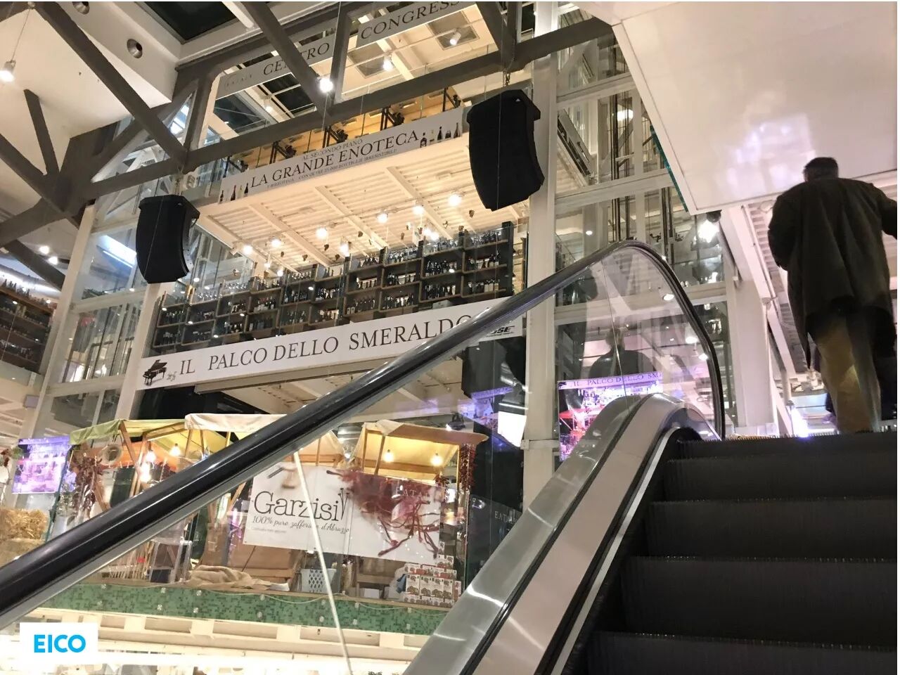 电梯上的标语“ FAI LA SPESA ANCHE ONLINE ”意为可以在网上购买 EATALY 产品。