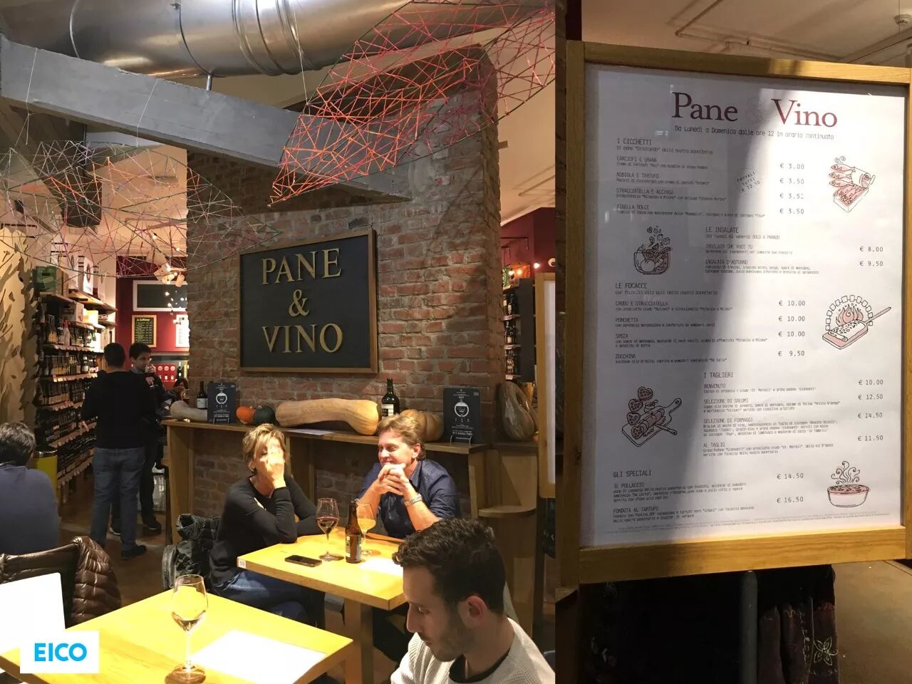 三层 PANE&VINO 店铺的菜单和顾客体验区。比较适合点一杯酒坐下来休息聊天。